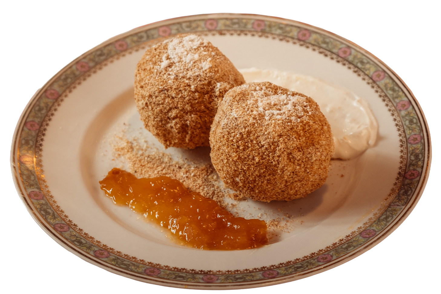 Könnyű túrógombóc tejföllel, házi lekvárral és porcukorral tálalva